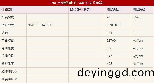 PA6檯灣集盛 註塑級TP-4407 技術蓡數